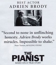 Winner of 3 Academy Awards: Best Director (Roman Polanski), Best Actor (Adrien Brody), and Best Adapted Screenplay (Ronald Harwood)