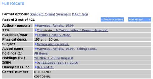 A book entitled The Pianist by Ronald Harwood has recently surfaced on the market.