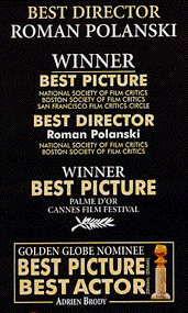 Winner of 7 César [France's equivalent of the Academy Awards] Awards: Best Film, Best Director (Roman Polanski), Best Actor (Adrien Brody), Best Cinematography (Pawel Edelman), Best Set Design (Allan Starski), Best Original Score (Wojciech Kilar), and Best Sound (Jean-Marie Blondel, Gerard Hardy, Dean Humphreys)