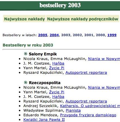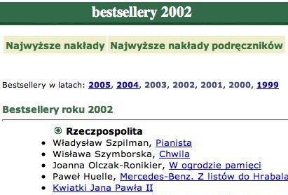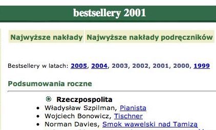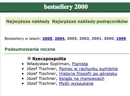 Najbardziej poruszajaca ksiazka roku jest Pianista Wladyslawa Szpilmana, historia przezycia okupacji hitlerowskiej w Warszawskim Getcie, napisana ponad piecdziesiat lat temu.
